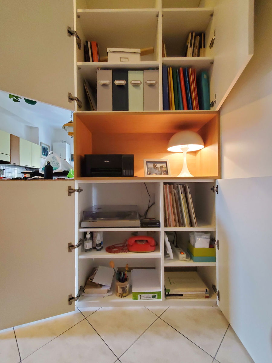Nelle case non troppo grandi, spesso l’ingresso non può essere adibito solo alla funzione di ingresso poiché fa già parte della zona living. Magari c’è bisogno di recuperare un po’ di spazio per dei libri, o una piccola zona ufficio con stampante, cartelline e faldoni, per non parlare dei vari telefono e modem, uno spazio per gli svariati caricabatterie o una zona di ricarica per smartphone e tablet.